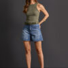Bermuda Jeans Com Bigode