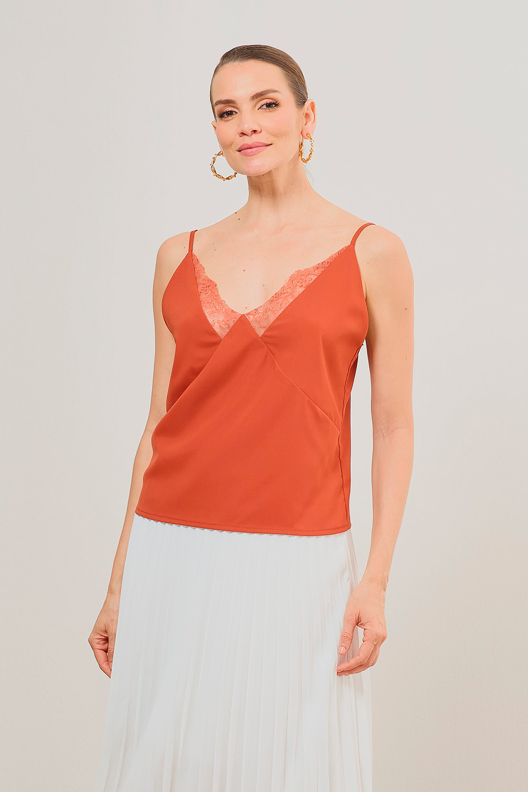 Blusa Alça Com Renda No Decote Crepe