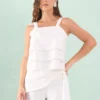 Blusa Alça Cropped Camadas Linho Misto