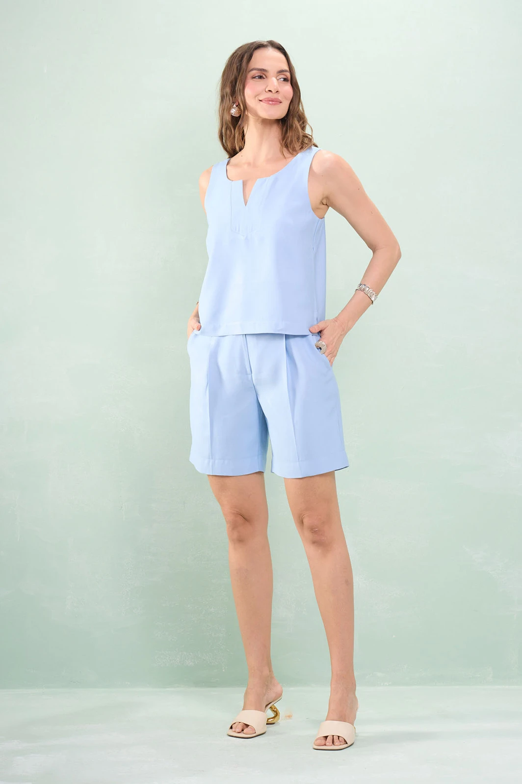 Blusa Alça Larga Pala Decote V Alfaiataria