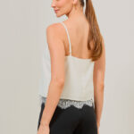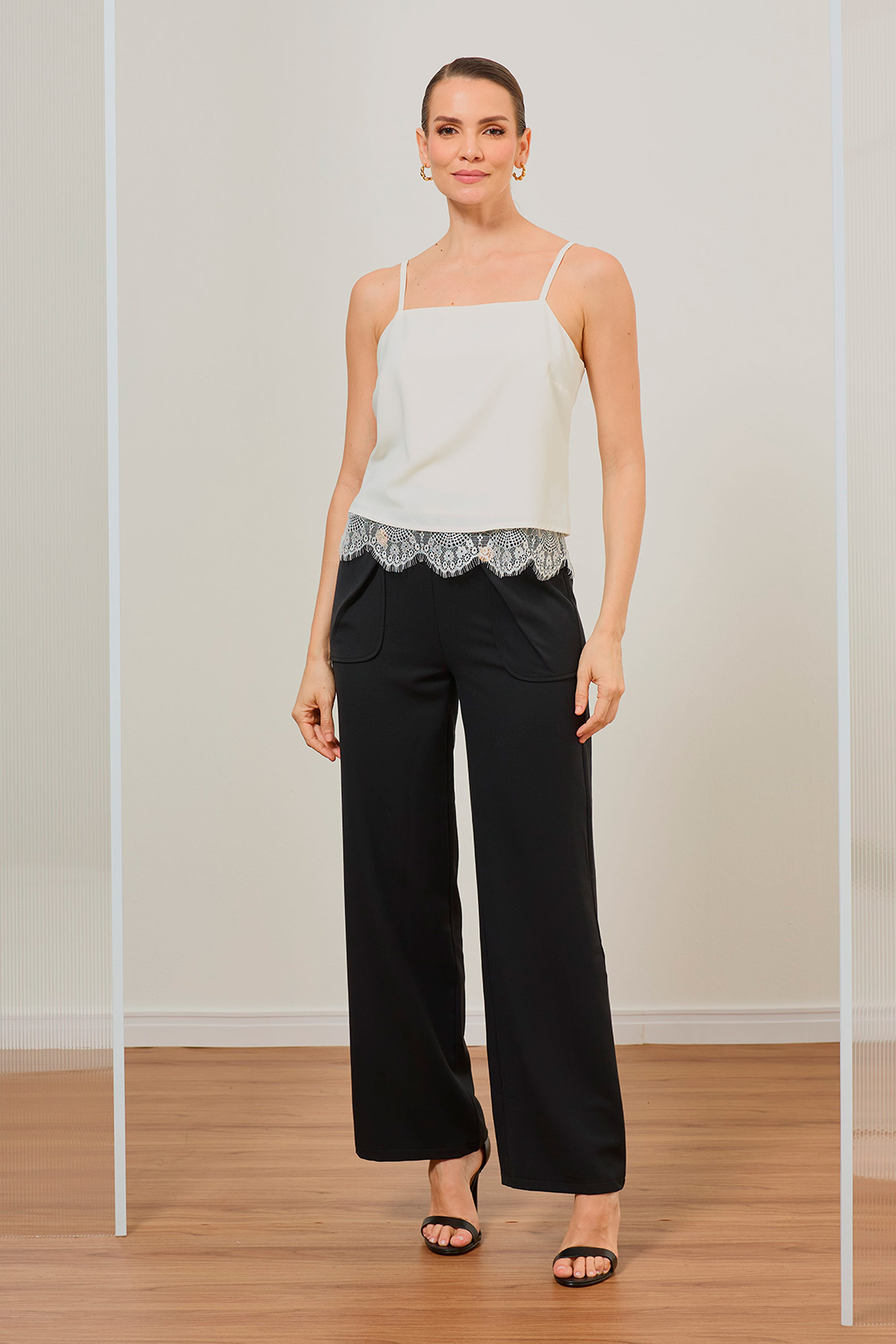 A blusa de alça em crepe traz leveza e delicadeza com um toque sofisticado.