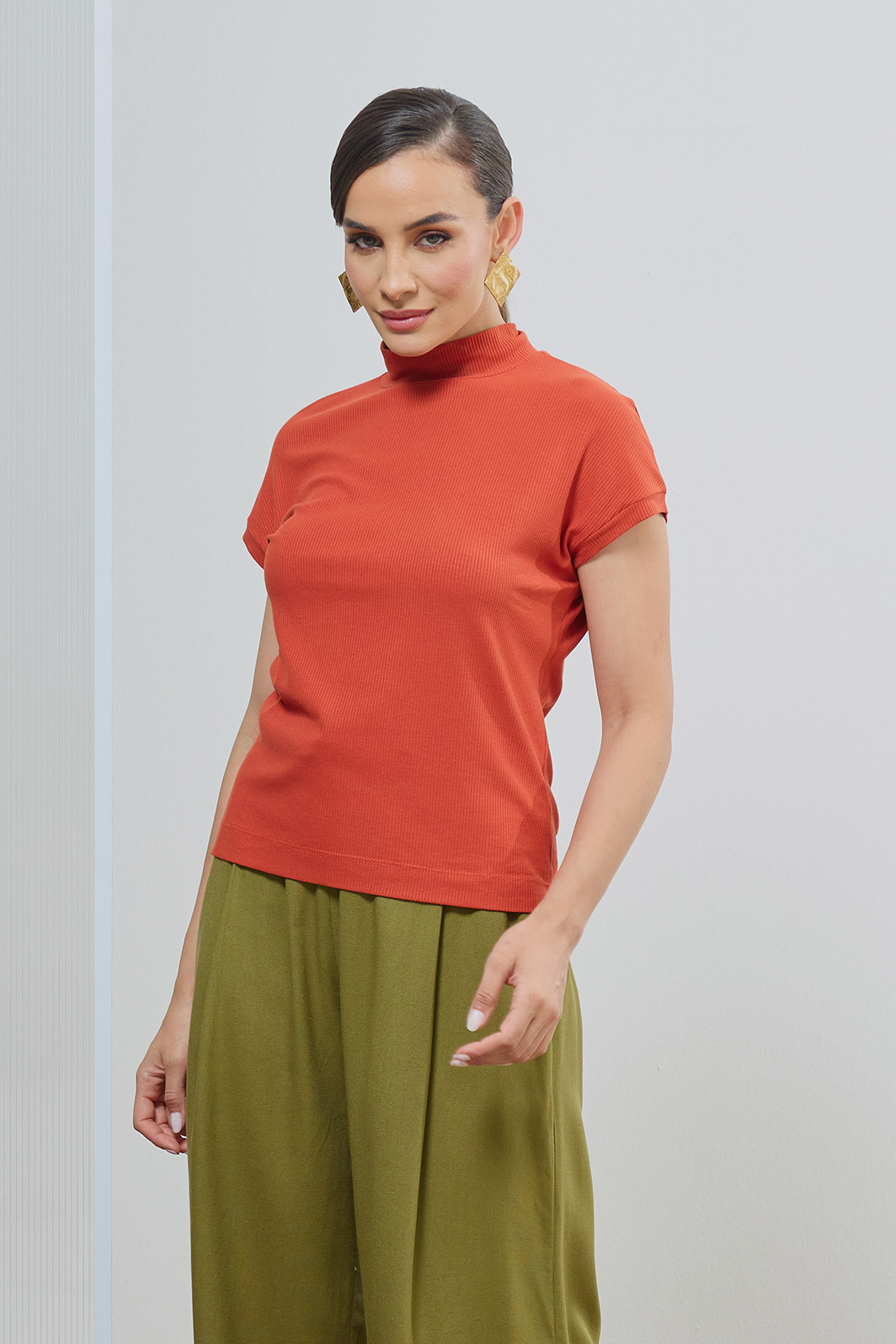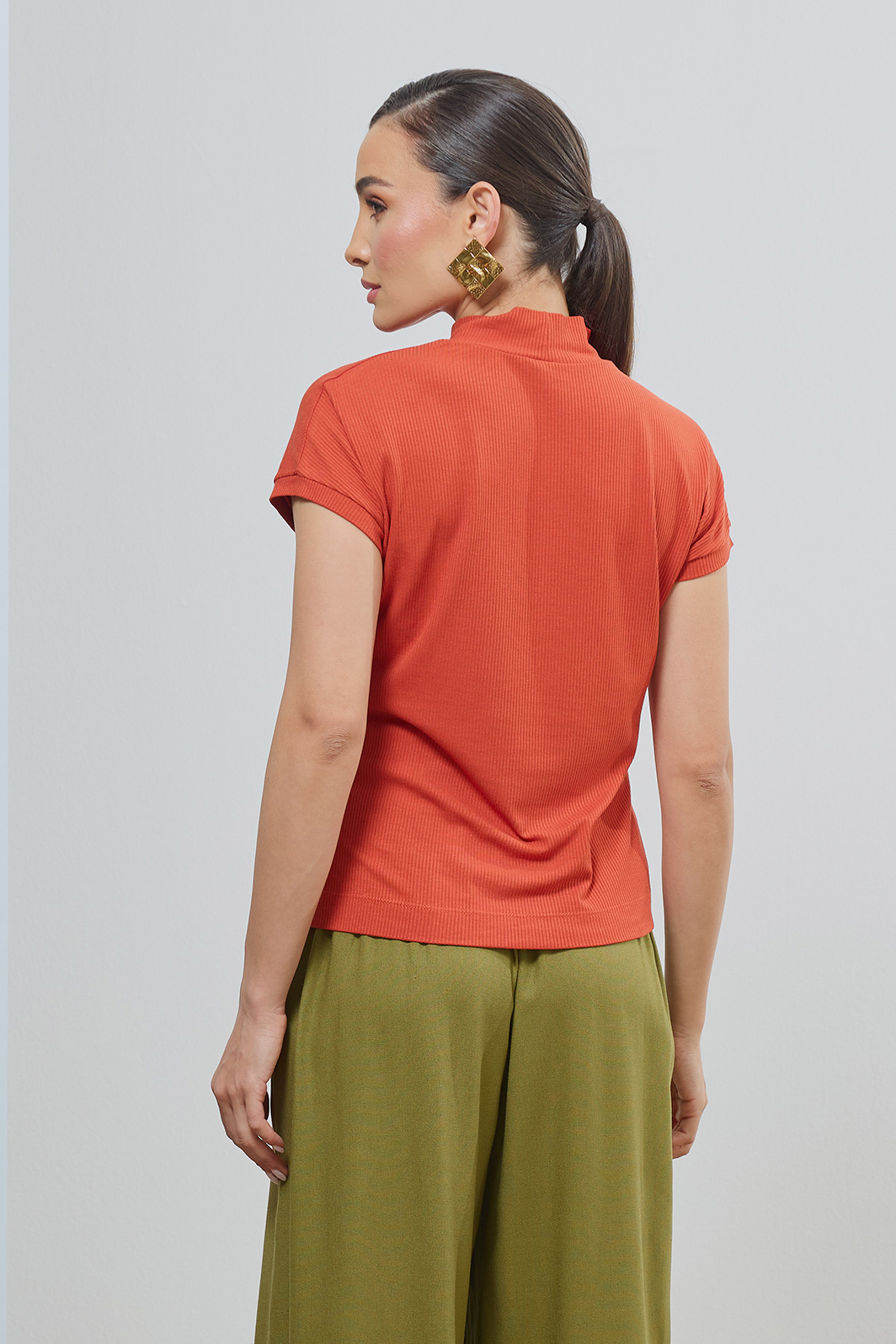 A Blusa Gola Alta em Malha Canelada é a base perfeita para produções sofisticadas e confortáveis.