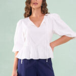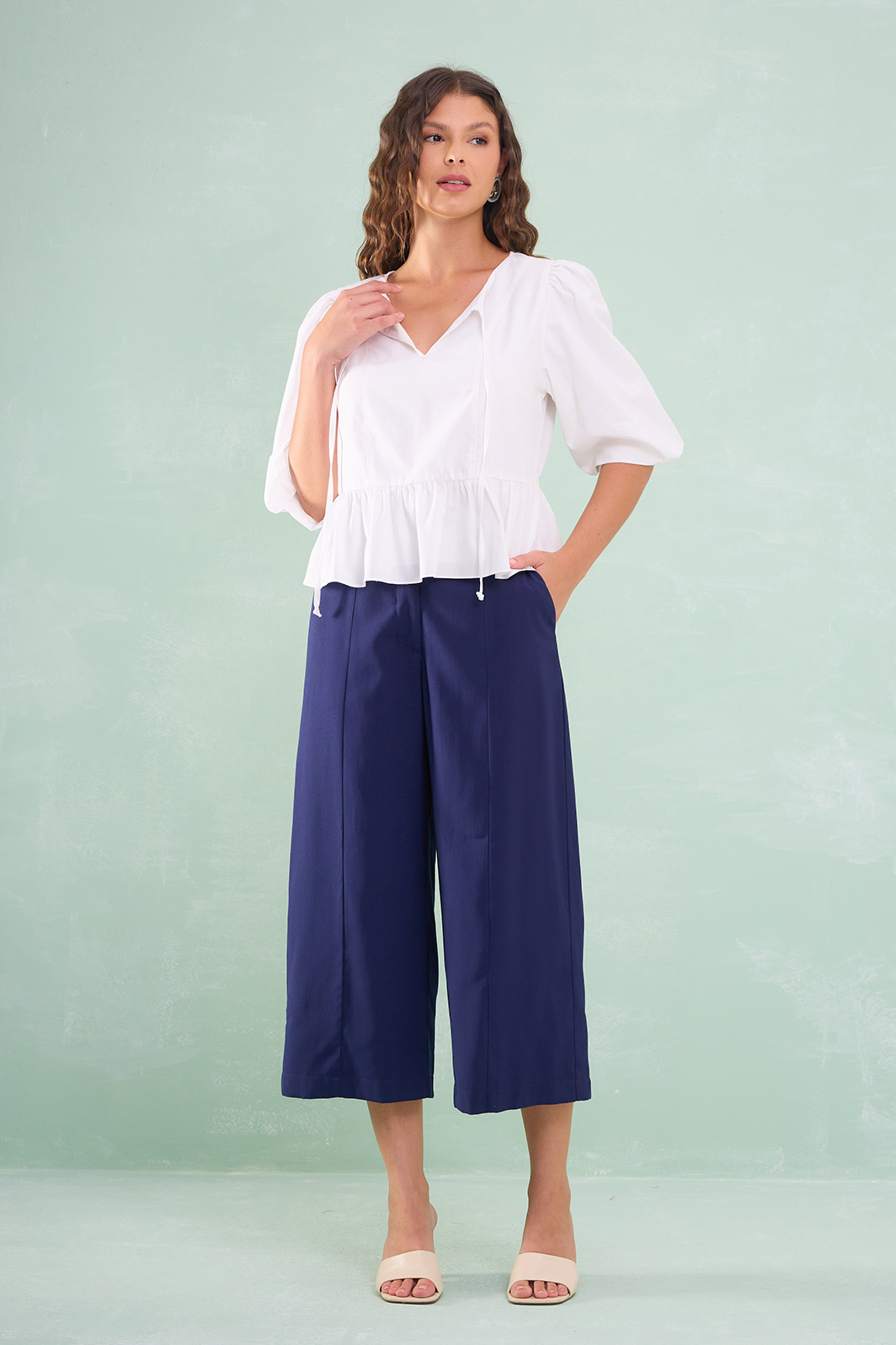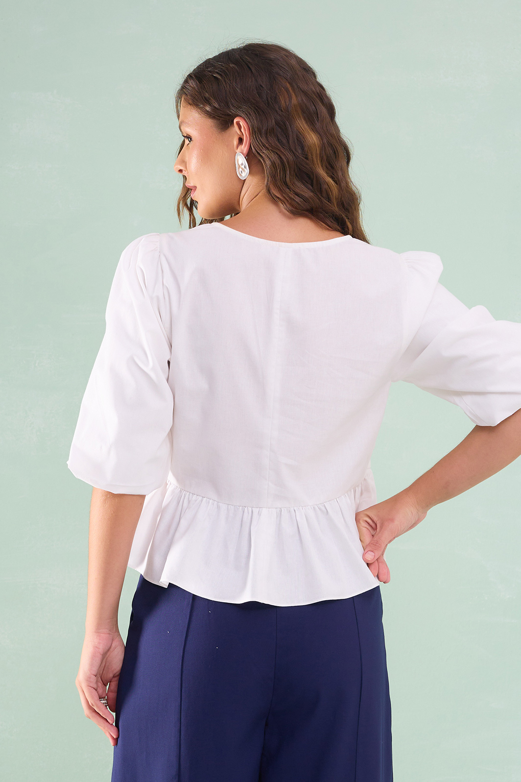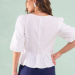 Blusa Com Peplum e Amarração No Decote Tricoline