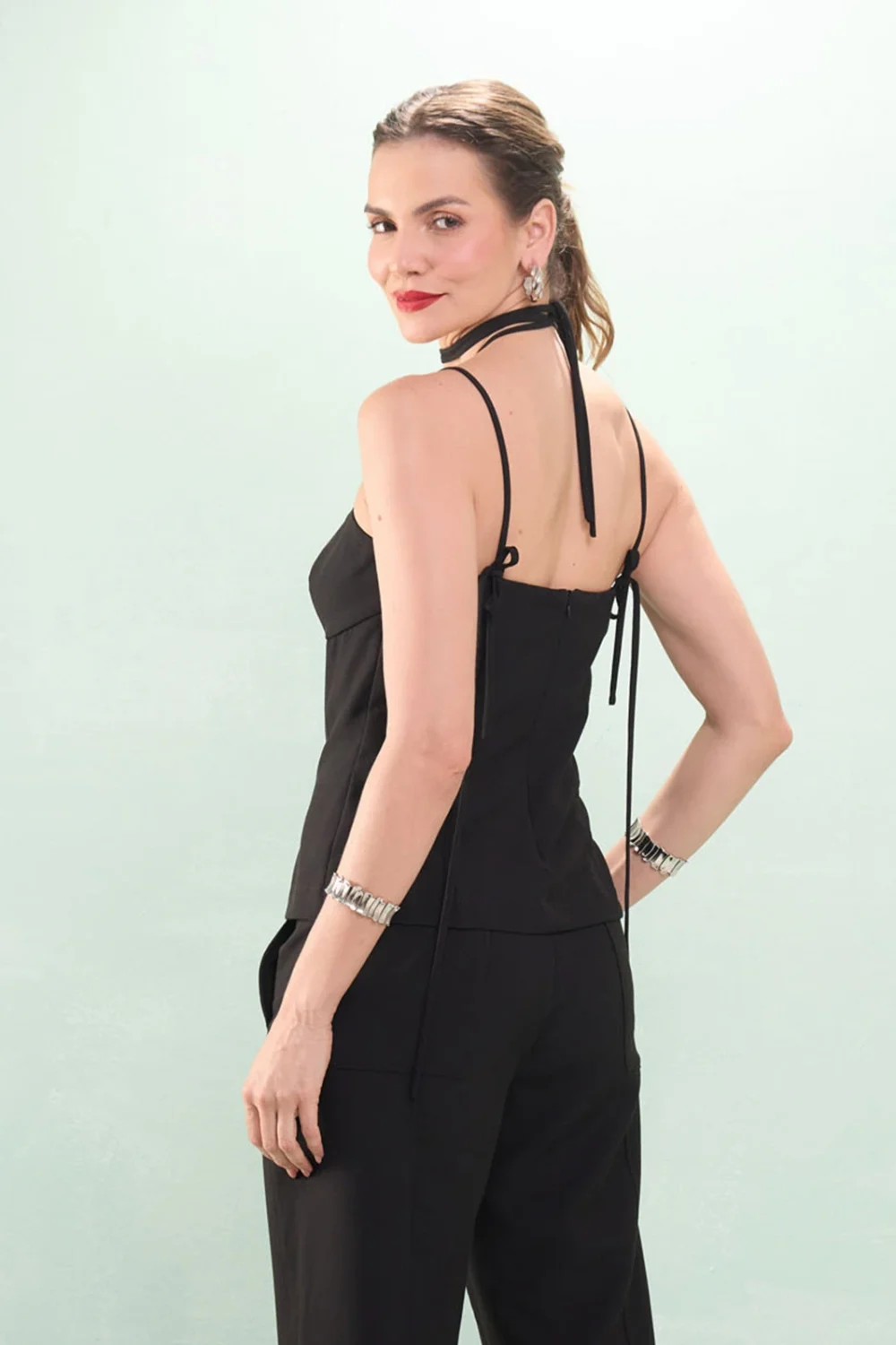 Blusa Corset Alça Fina Com Amarração Alfaiataria