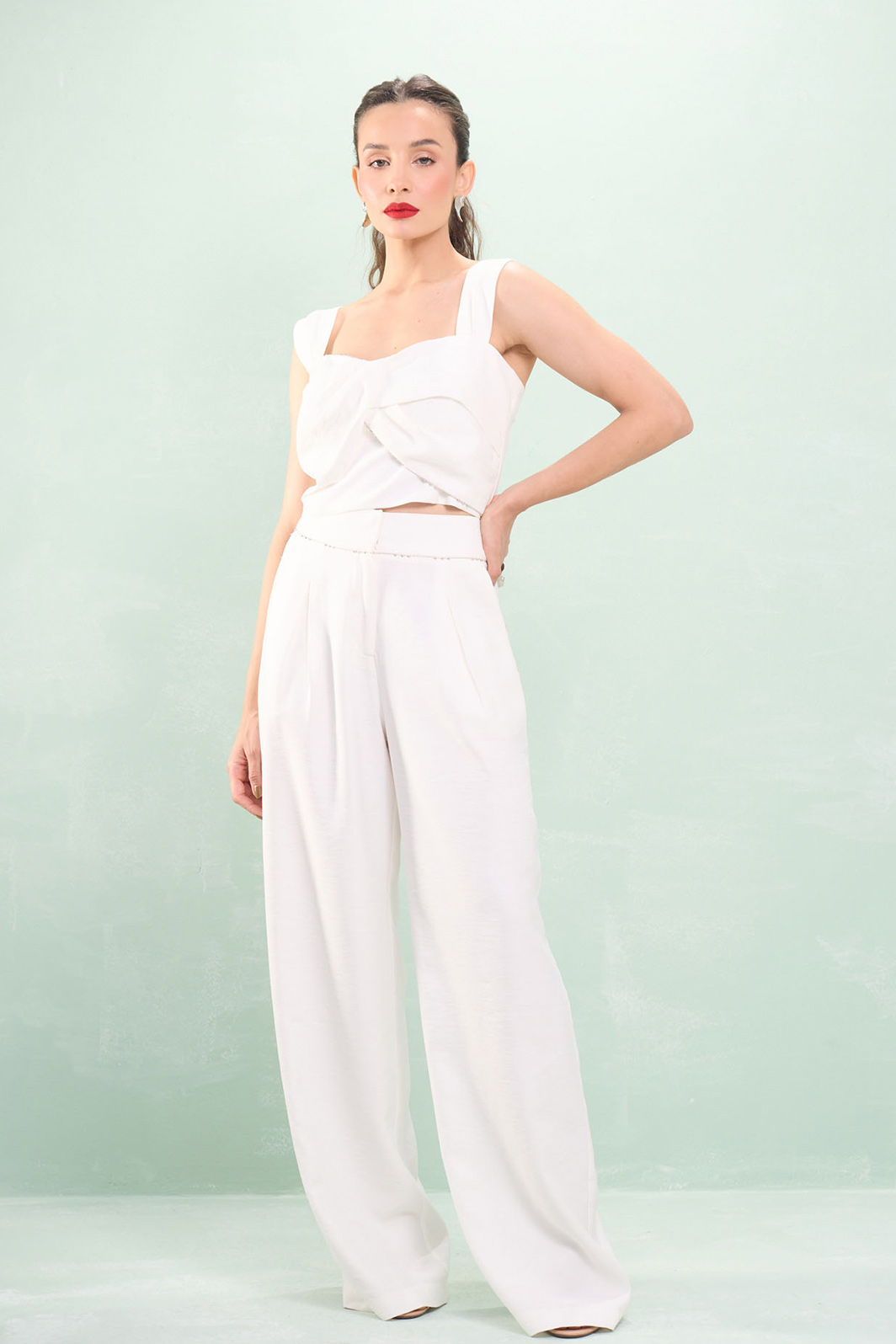 Blusa Cropped Detalhe Pregas Com Aviamento Alfaiataria