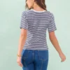 Blusa Decote Canoa Malha Viscose Mista Listrada