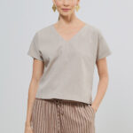 Blusa Decote V Com Torçal Alfaiataria Mescla