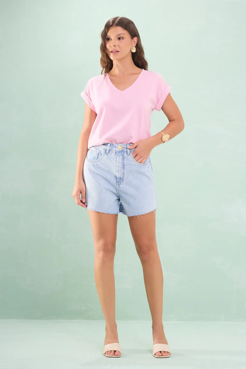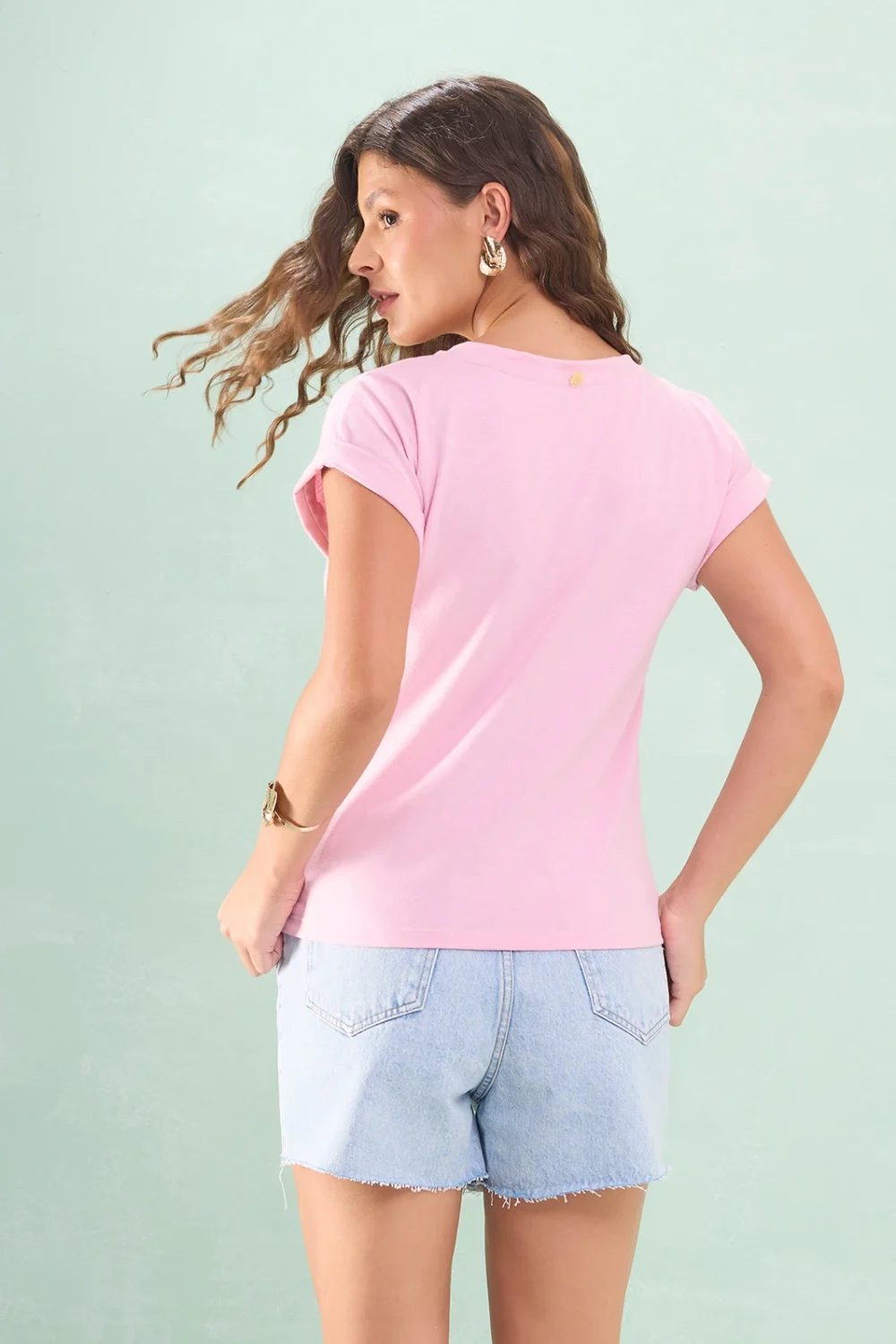 Blusa Decote V Manga Barra Italiana Malha Algodão