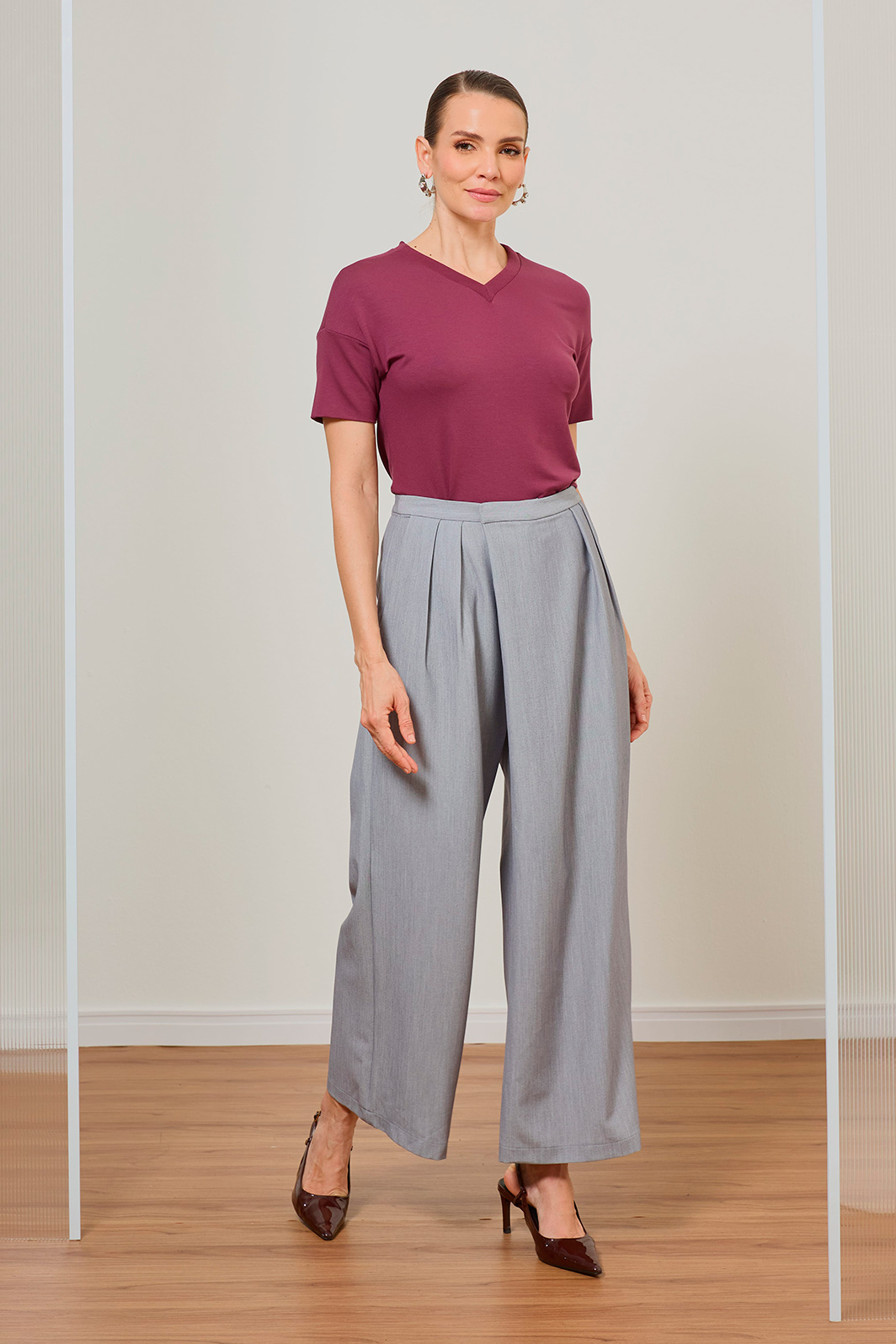 Aposte em pantalonas de alfaiataria para um visual contemporâneo ou use com jeans para um dia a dia elegante. Finalize com sapatos de bico fino e acessórios discretos.