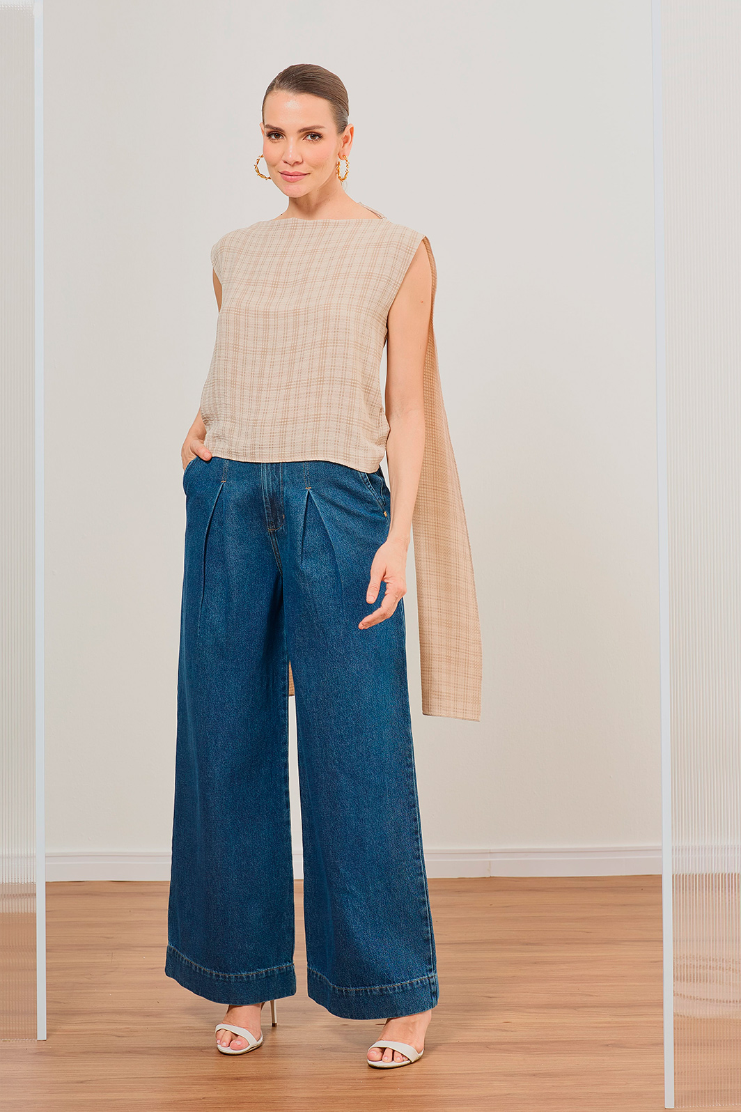 A Blusa Frente Única Echarpe traz uma proposta de design original e fluida. O detalhe das faixas longas adiciona um movimento suave e sofisticado, elevando a peça a um item de destaque pela sua delicadeza.