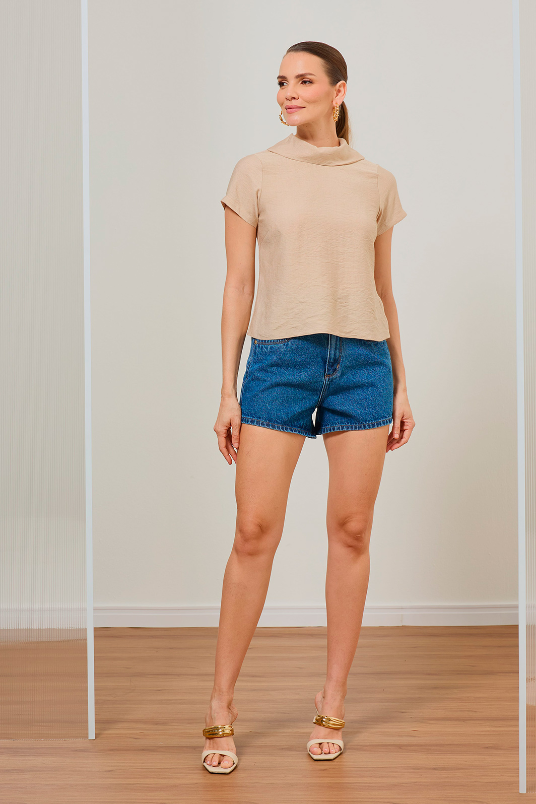 Combine com jeans para um visual casual sofisticado ou alfaiataria para o office. Aposte em brincos orgânicos dourados para valoriza.