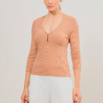 Blusa Manga 3/4 Decote V Com Fecho Canelada