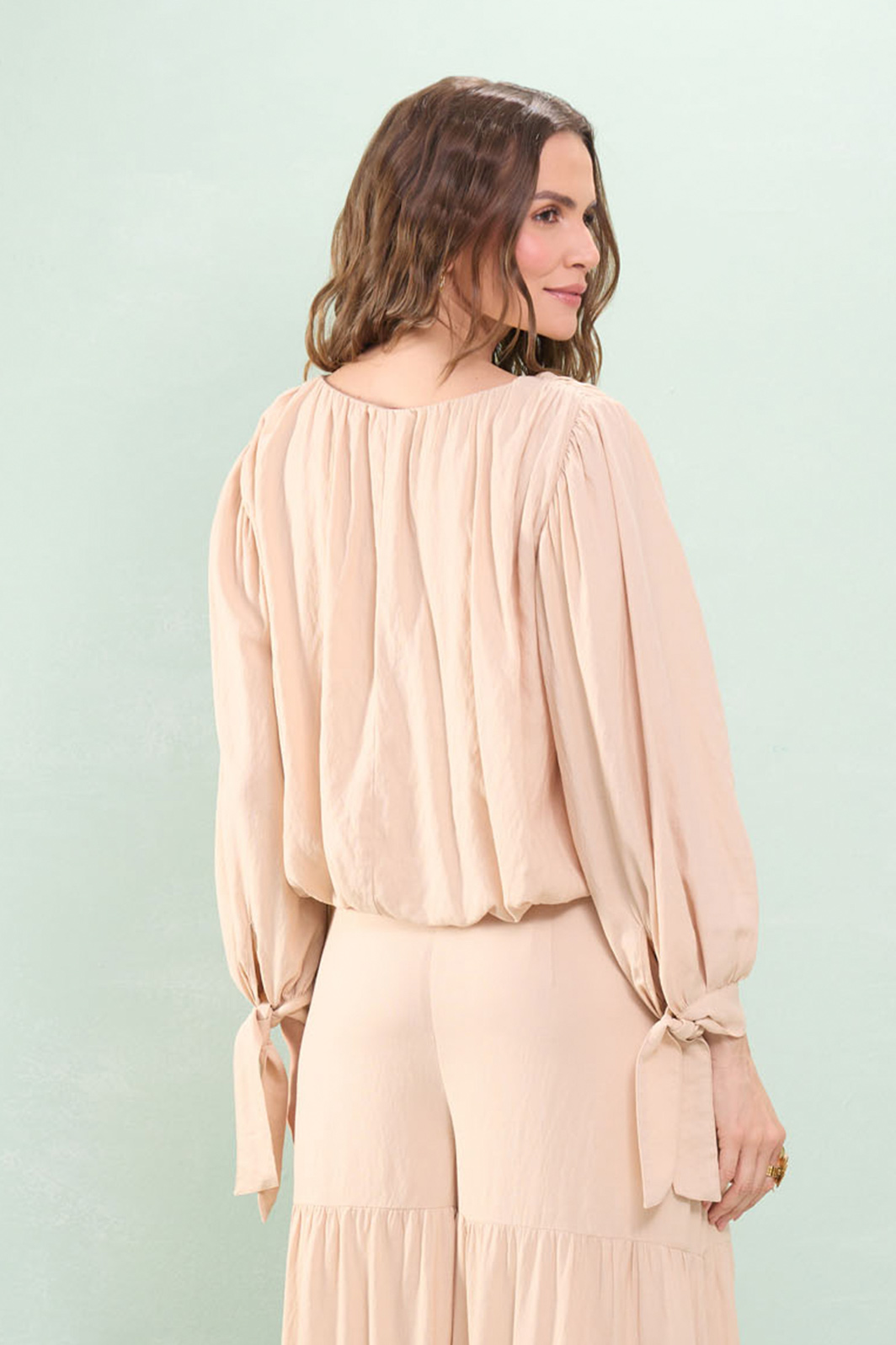 Blusa Manga Longa Com Amarração No Punho Viscocrepe