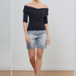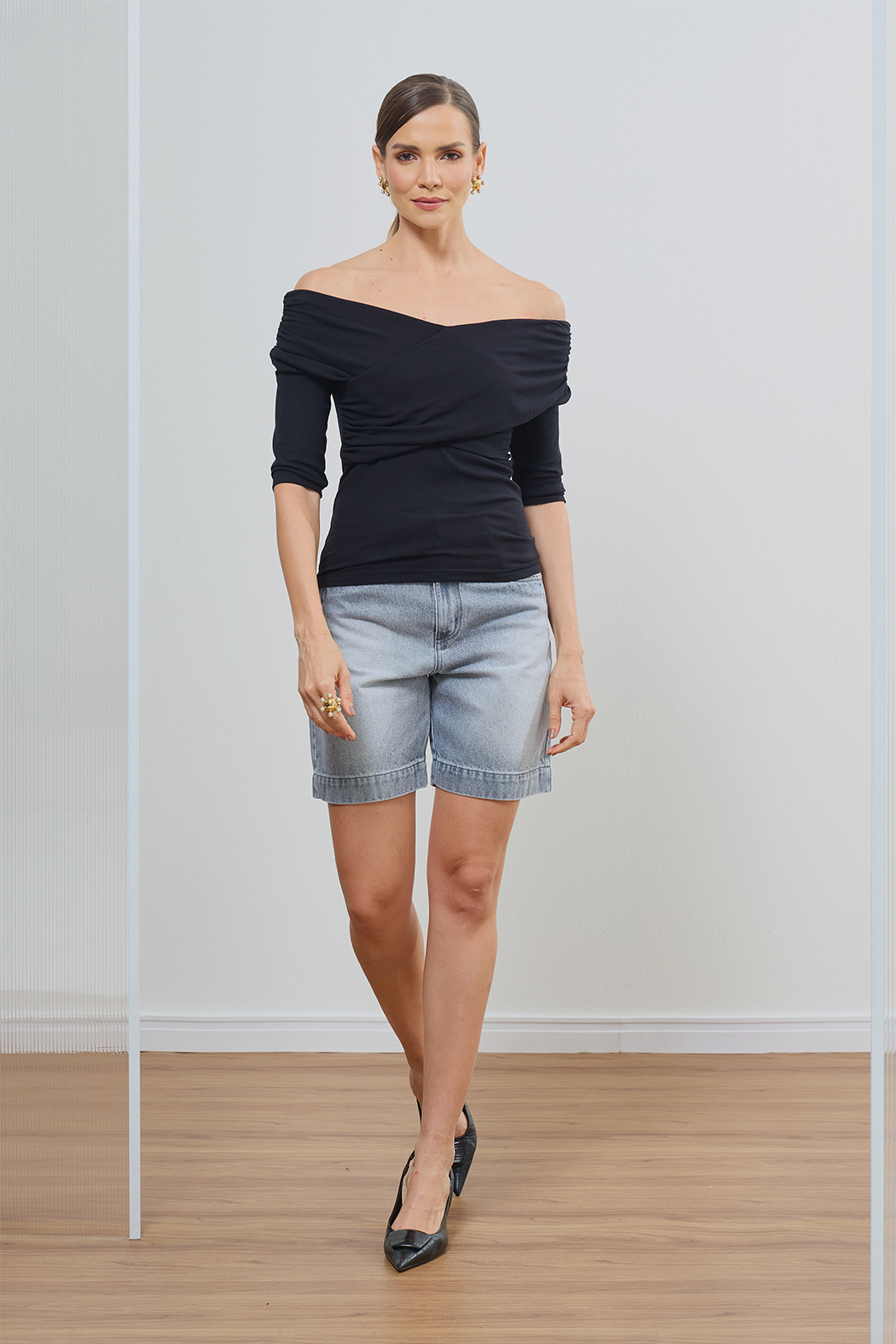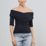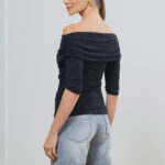 Blusa Ombro A Ombro Com Transpasse Manga 3/4 Canelada