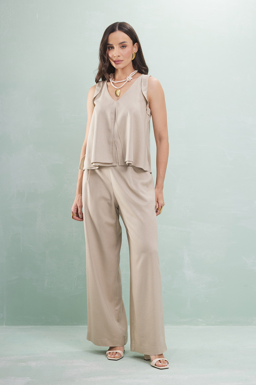 Blusa Regata Babado Com Sobreposição Linho