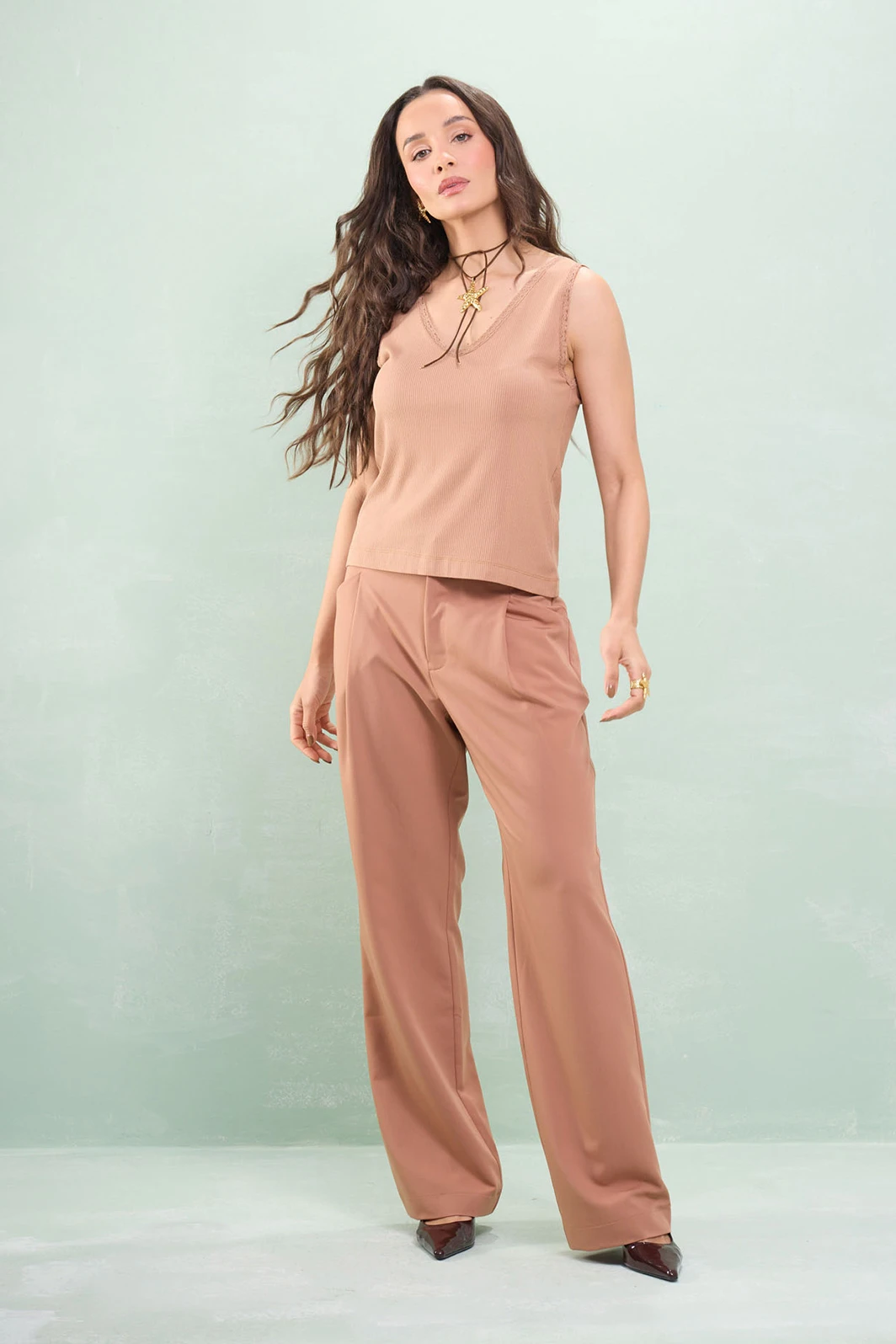 Blusa Regata Decote V Com Renda Canelado
