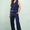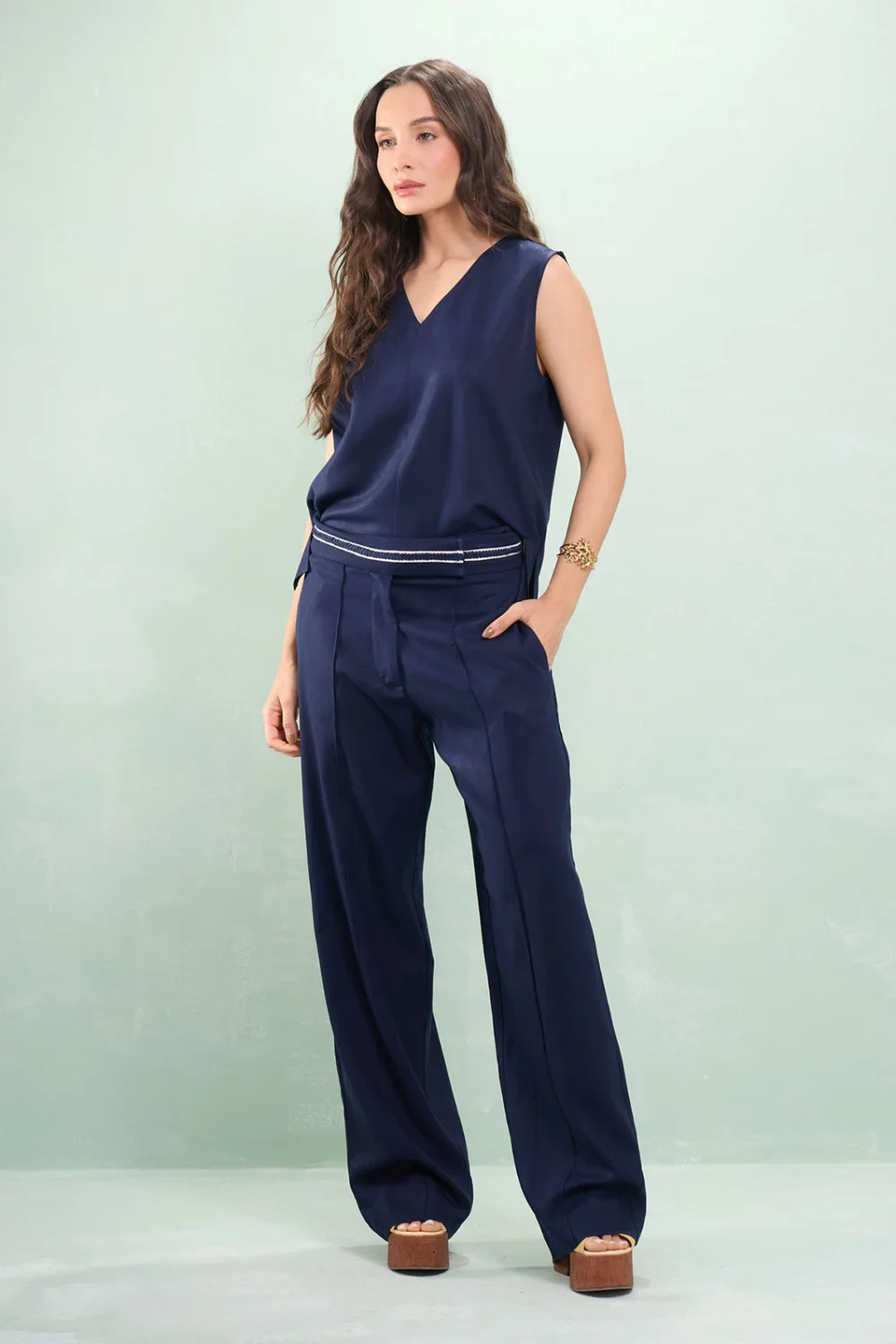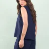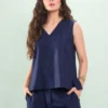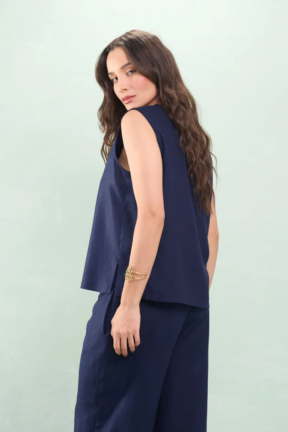 Blusa Sem Manga Decote V Com Fenda Lateral Linho