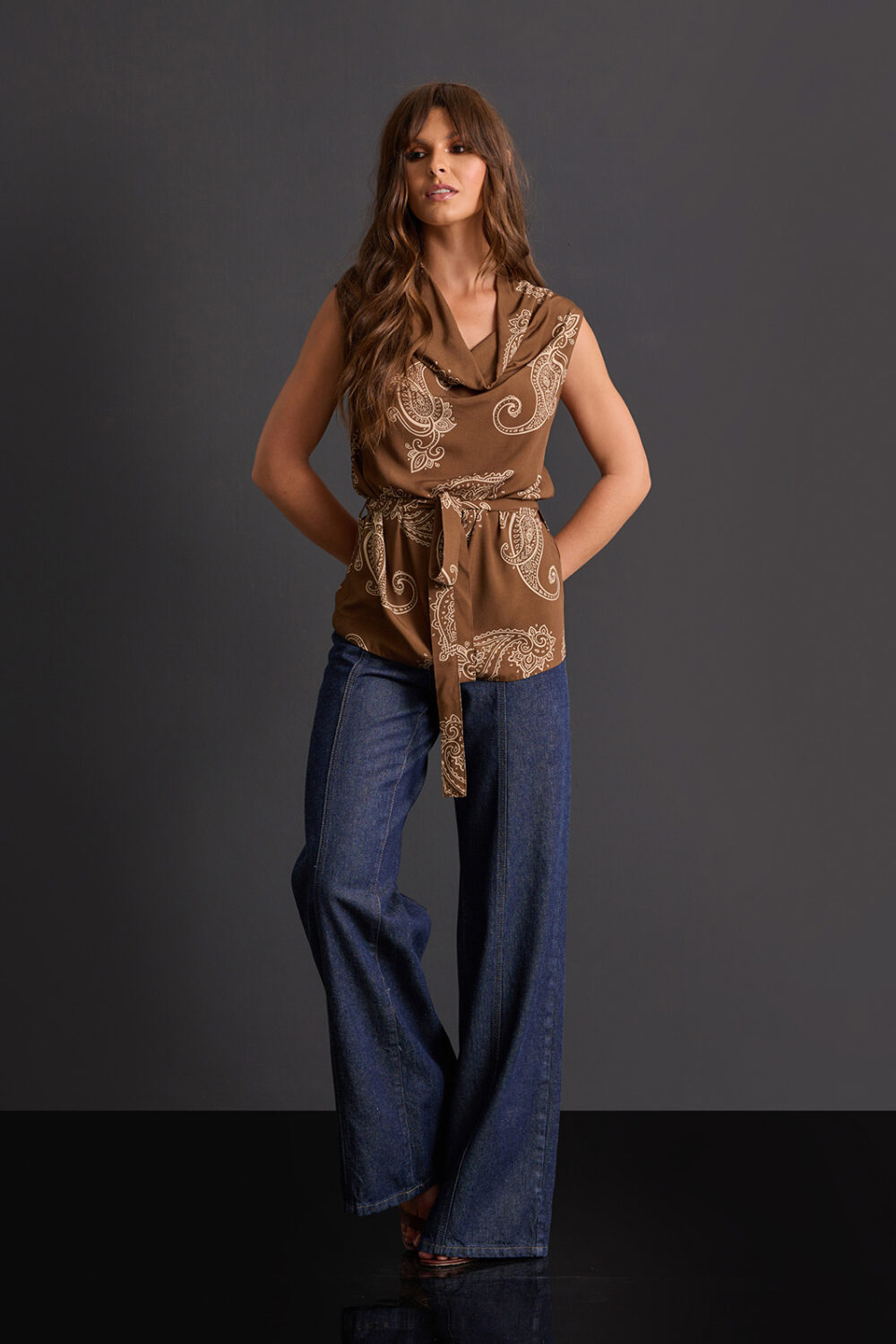 Blusa Sem Manga Gola Degagê Com Faixa Viscose