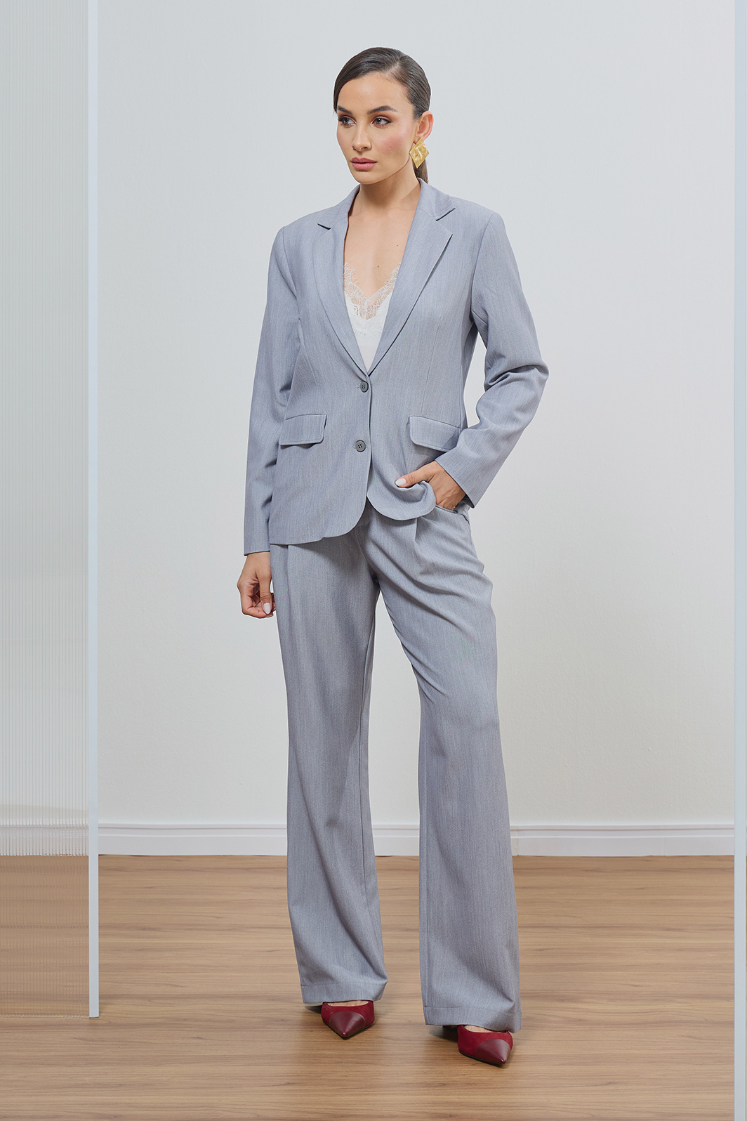Sua modelagem estruturada e o tom suave elevam qualquer composição com elegância atemporal.