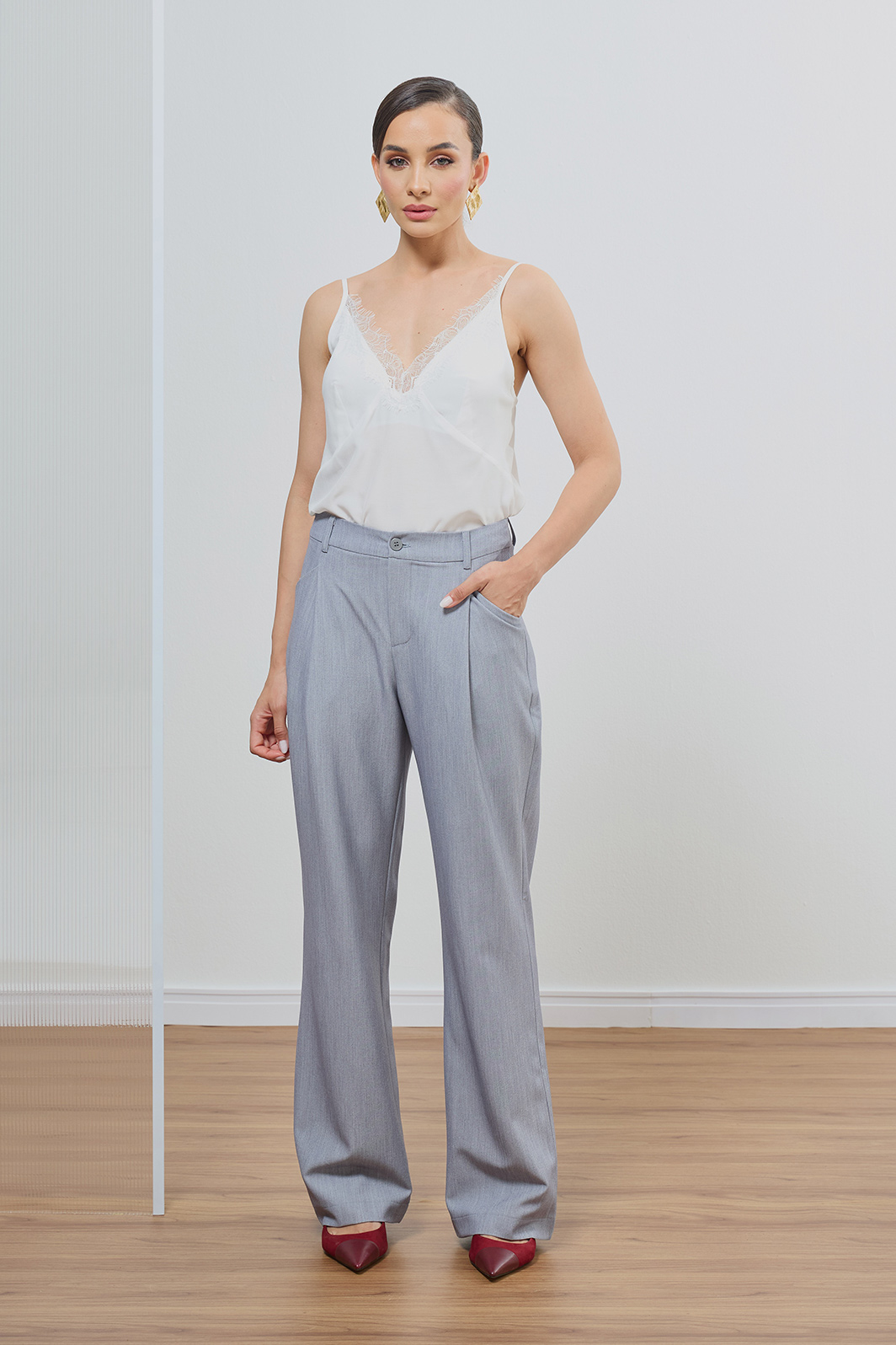 A Calça Alfaiataria Bolso Diagonal é o equilíbrio perfeito entre rigor e leveza.