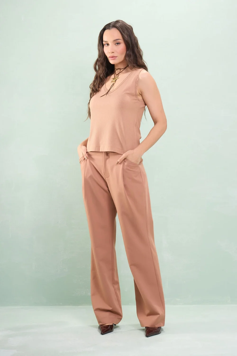 Calça Bolso Diagonal Detalhe Prega Alfaiataria
