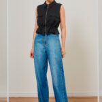 Sua silhueta de cintura alta e pernas amplas proporciona um visual alongado, marcante e versátil.