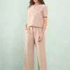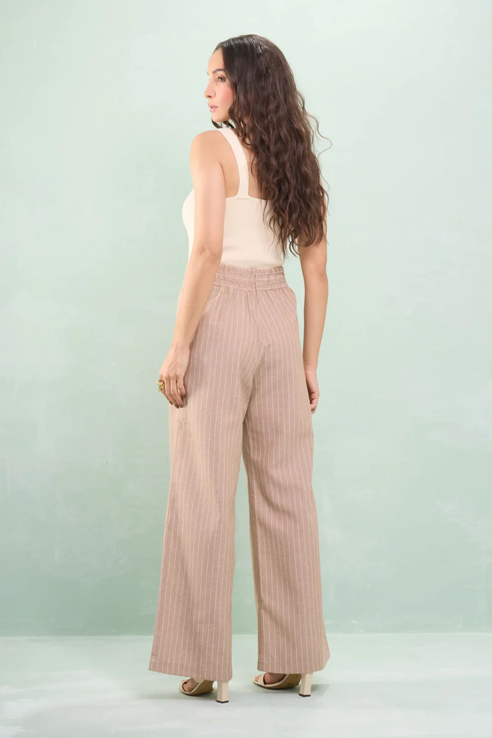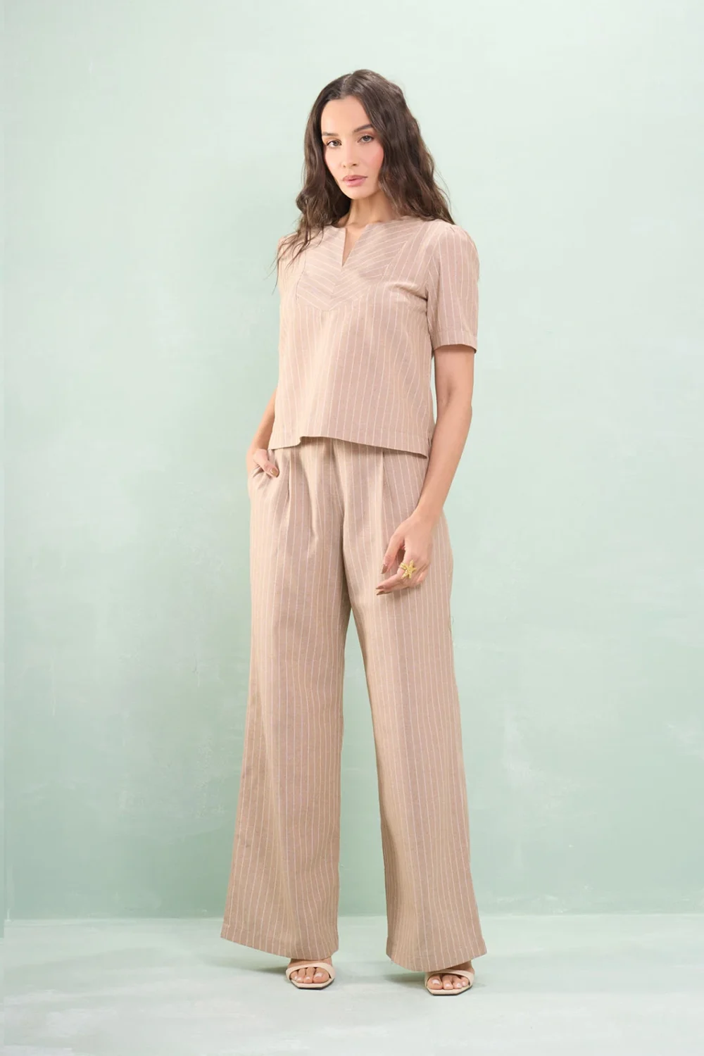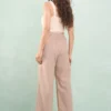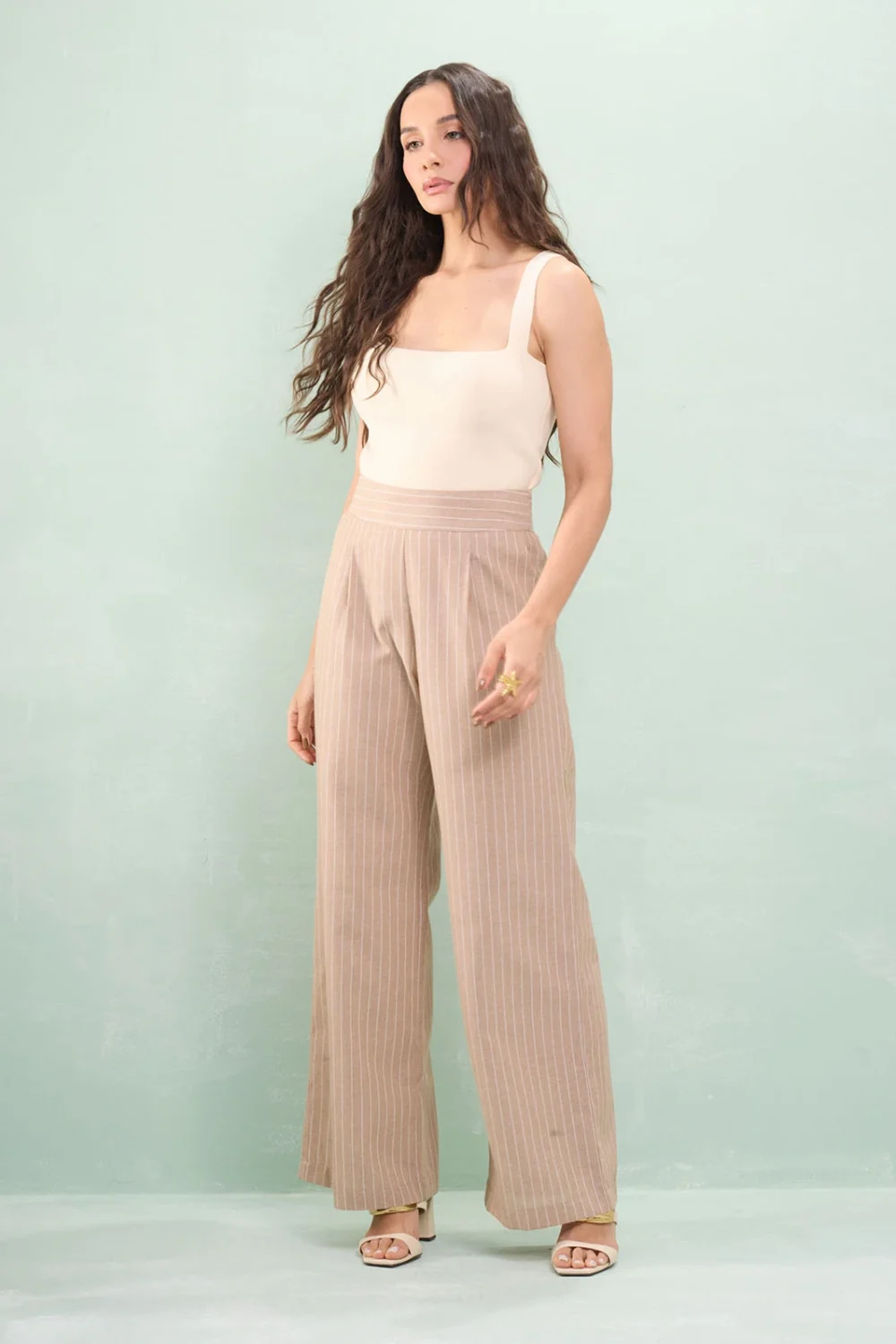 Calça Reta Com Pala Linho Listrado