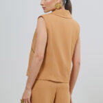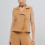 Colete Biker em Alfaiataria Crepe – Caramelo