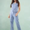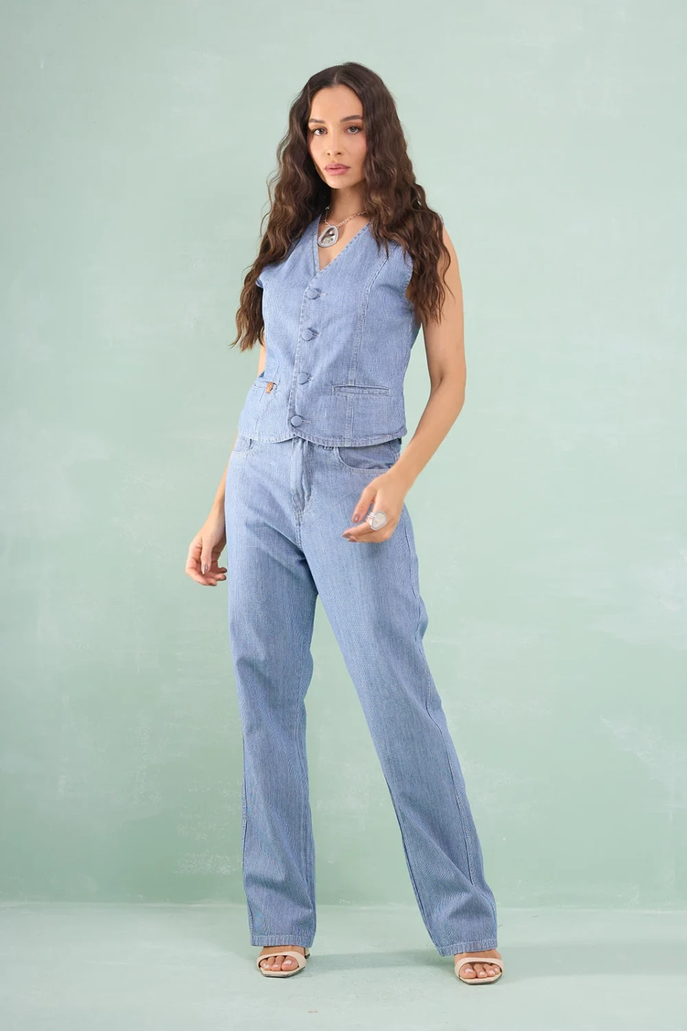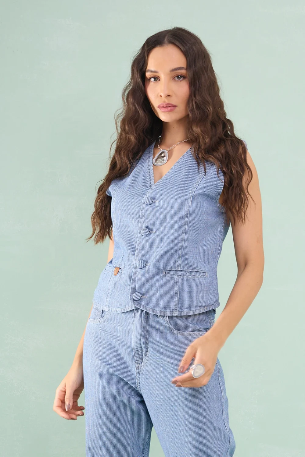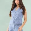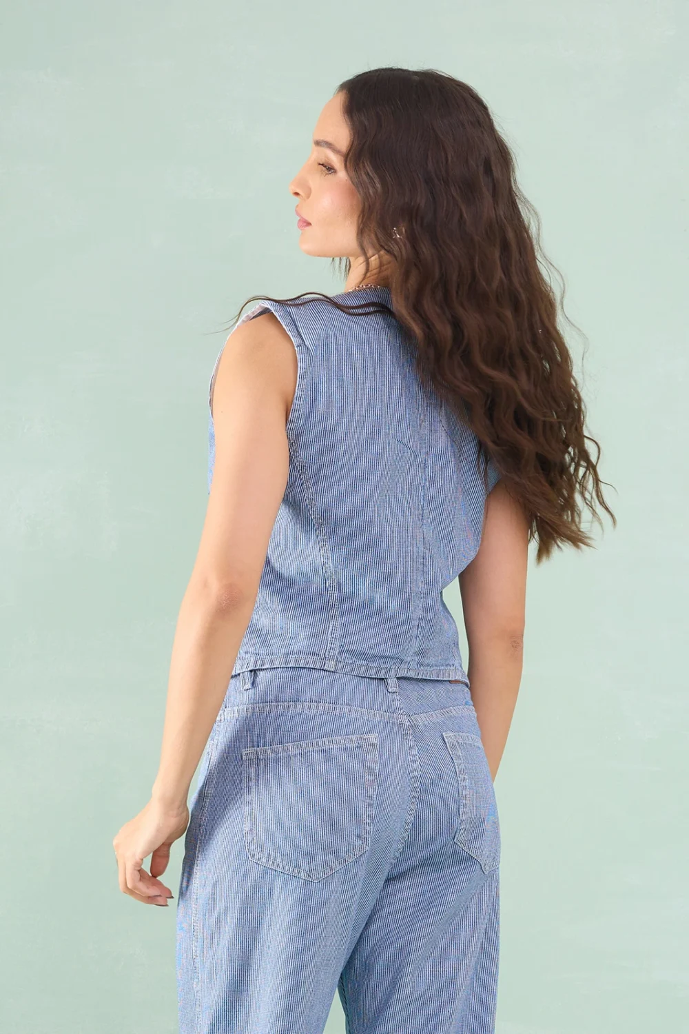 Colete Jeans Botão Forrado Listrado
