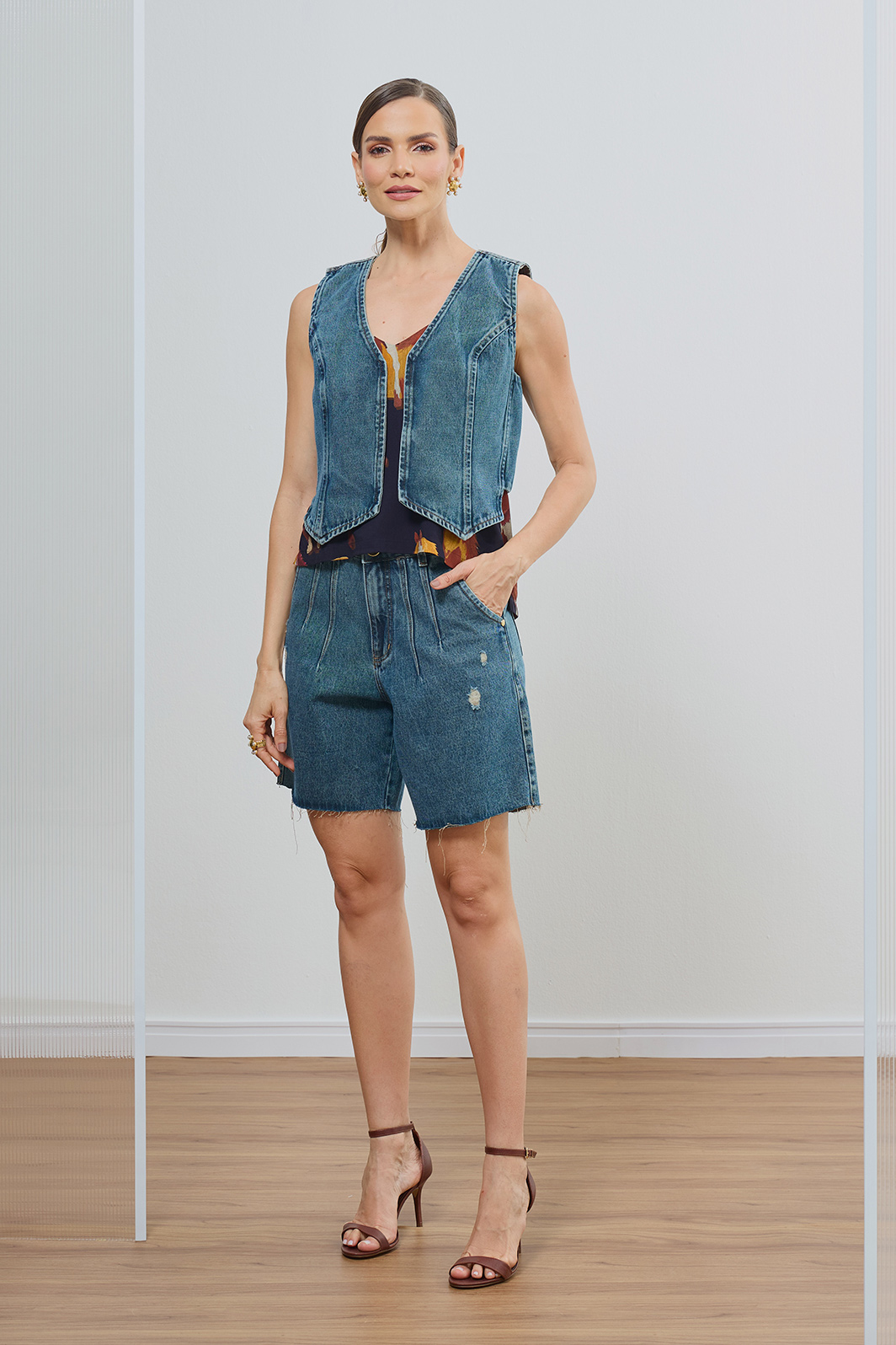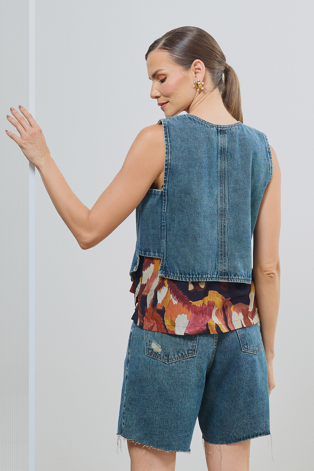 O Colete Jeans Dupla Face é a peça versátil que transforma o look com criatividade e estilo.