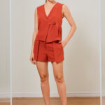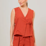 O Colete em Alfaiataria une a estrutura clássica ao design contemporâneo do transpasse lateral.