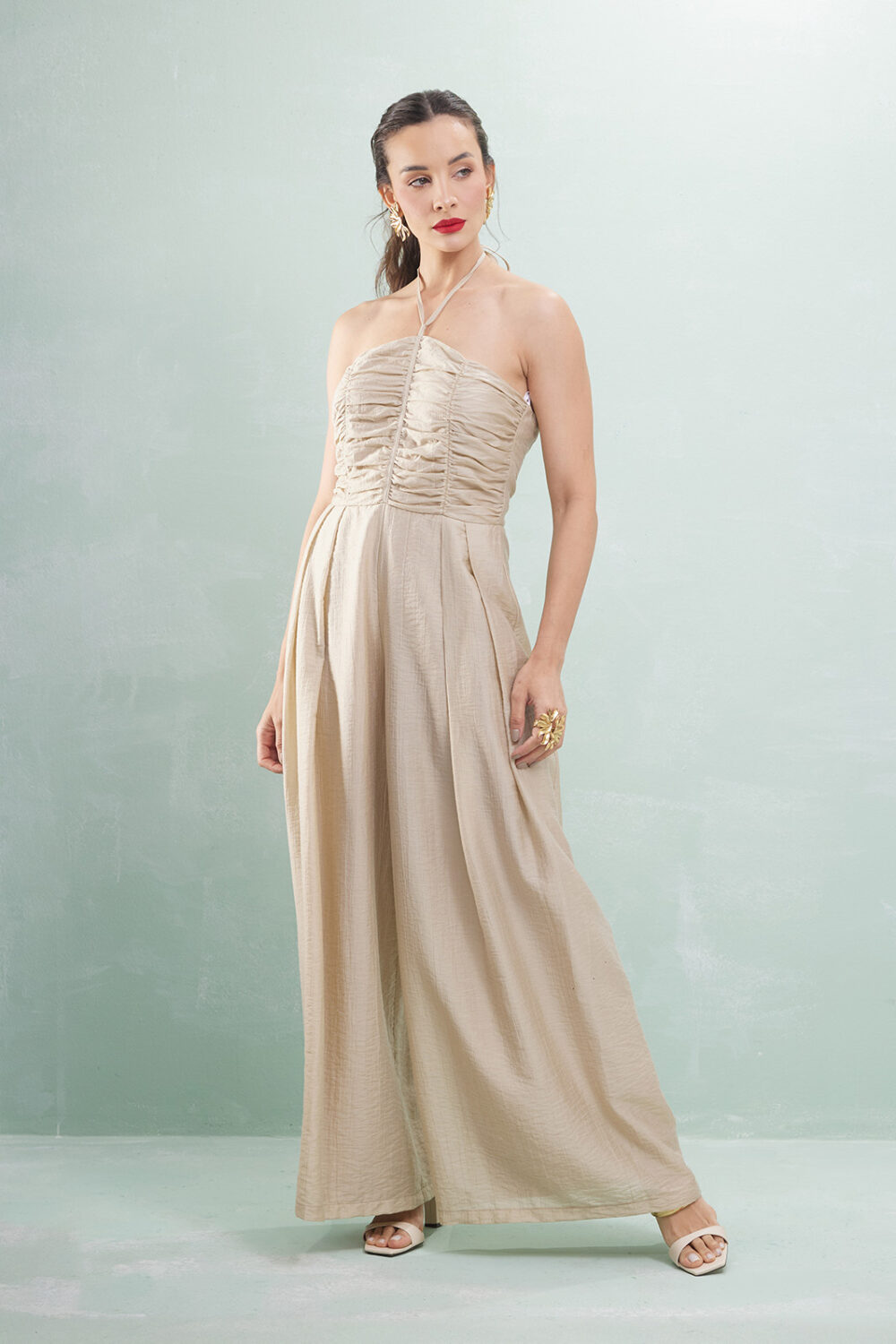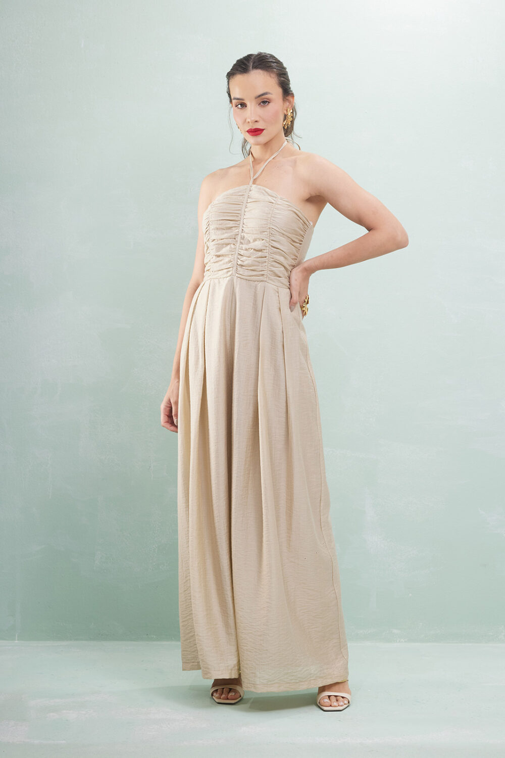 Macacão Pantalona Busto Drapeado Frente Única Viscose