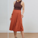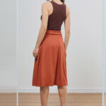 Com elegância natural e design feminino, a saia midi em linho traz o charme do transpasse aliado à sofisticação da fivela lateral. A modelagem valoriza a silhueta com leveza e movimento, enquanto o tom terracota reforça a proposta atemporal e contemporânea da peça.