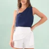 Short Com Pala Jabour Elástico Costas Linho Misto