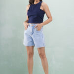 Short Jeans Com Recorte e Desfiado