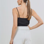 Para um visual monocromático e solar, combine com uma regata de seda ou camisa leve. Nos pés, sandálias de tiras finas ou flats sofisticadas completam o look com leveza.