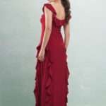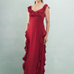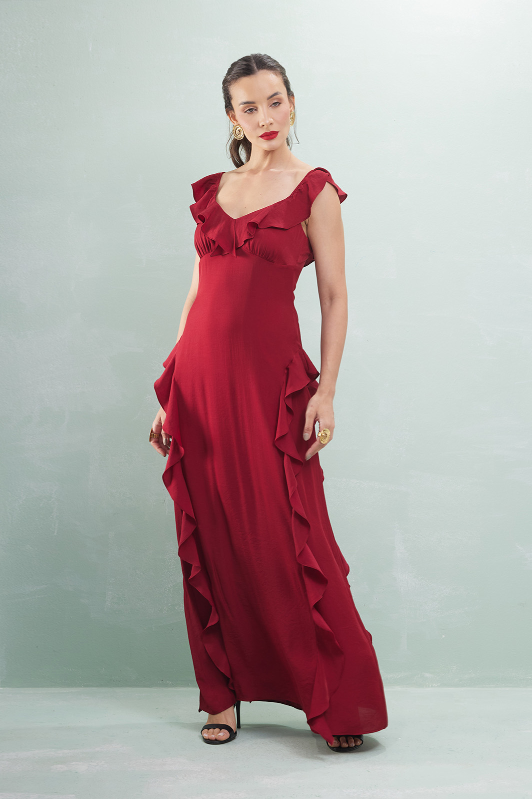 Vestido Longo Com Babados Viscose Acetinada