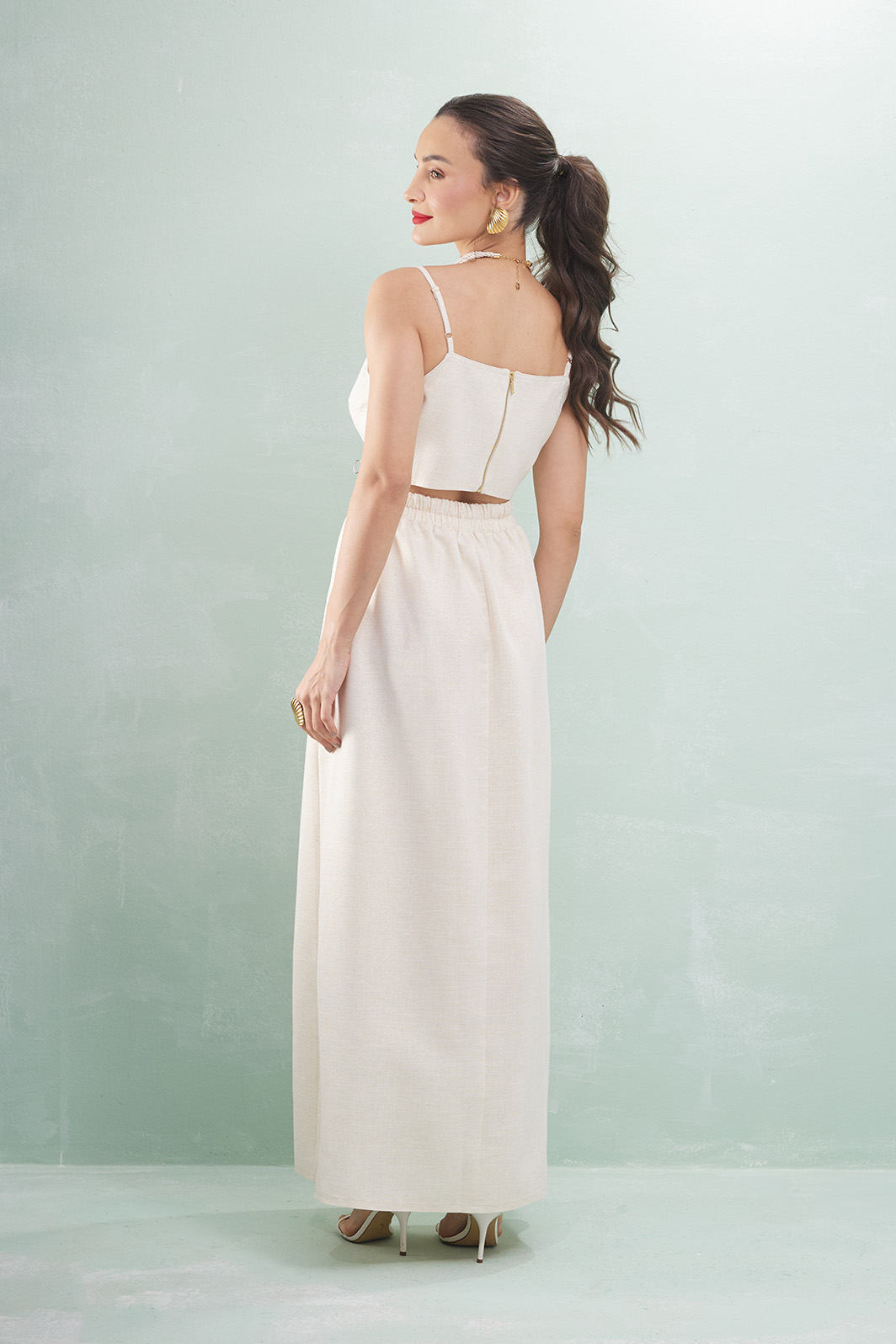 Vestido Midi Alça Fina Detalhe Costas Linho Com Lurex