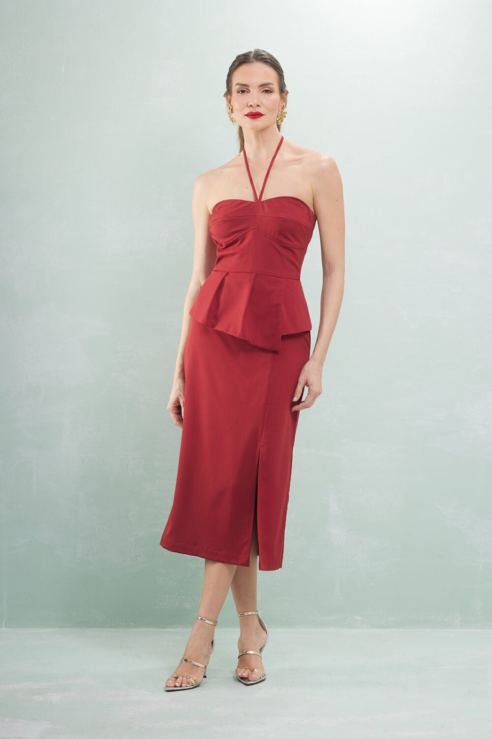 Vestido Midi Com Peplum Alfaiataria