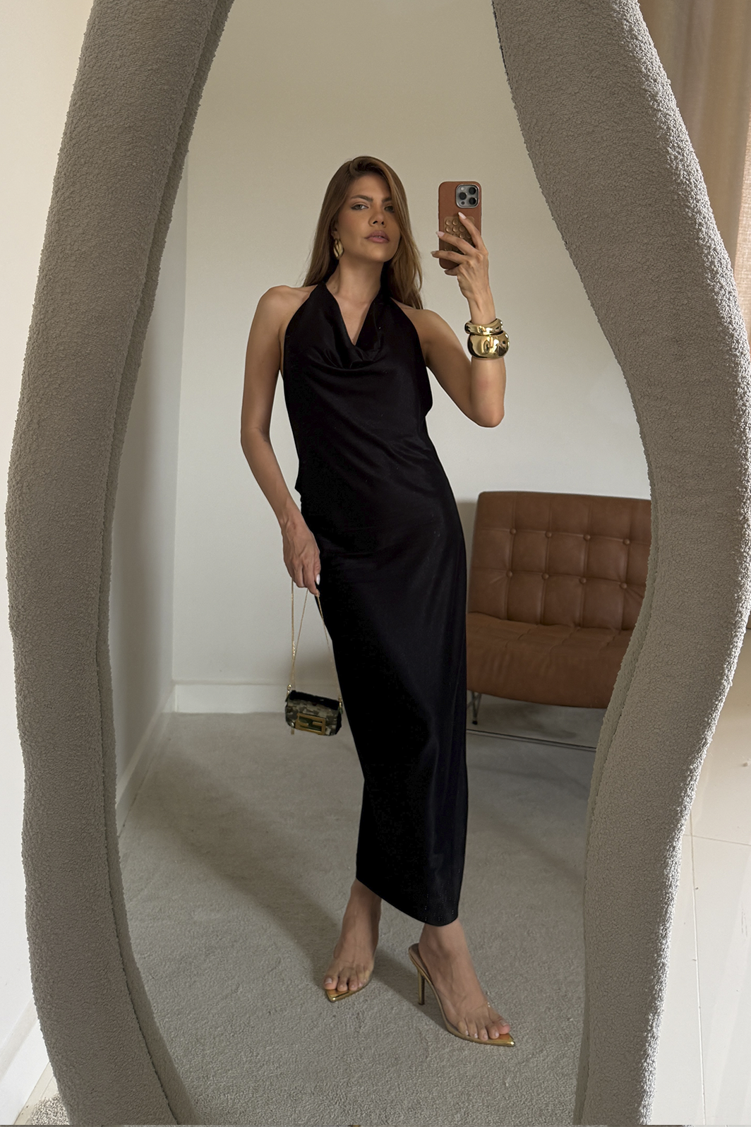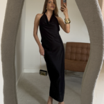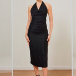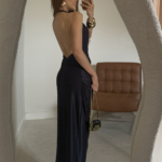 Finalize com sandálias de salto fino e acessórios metalizados para um visual noturno de impacto. Penteados presos são ideais para destacar o design das costas. Para uma proposta moderna, aposte em braceletes imponentes e uma clutch estruturada.