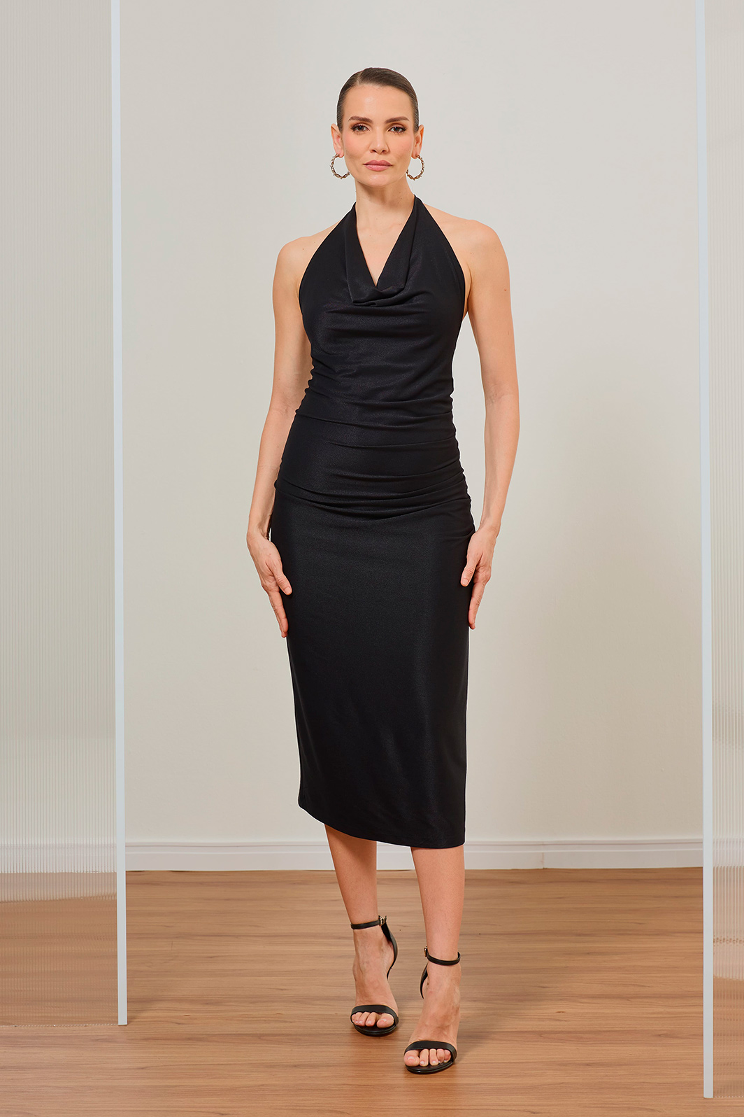O Vestido Midi Frente Única em Jersey é a expressão máxima da sofisticação minimalista. Sua silhueta fluida e o design com drapeados valorizam o movimento, unindo uma sensualidade sutil à elegância atemporal.