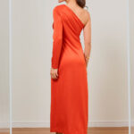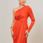 O Vestido Midi Ombro Único em Jersey é a síntese da elegância contemporânea. Sua assimetria marcante e o drapeado estratégico na cintura criam um visual fluido e de impacto imediato para ocasiões especiais.