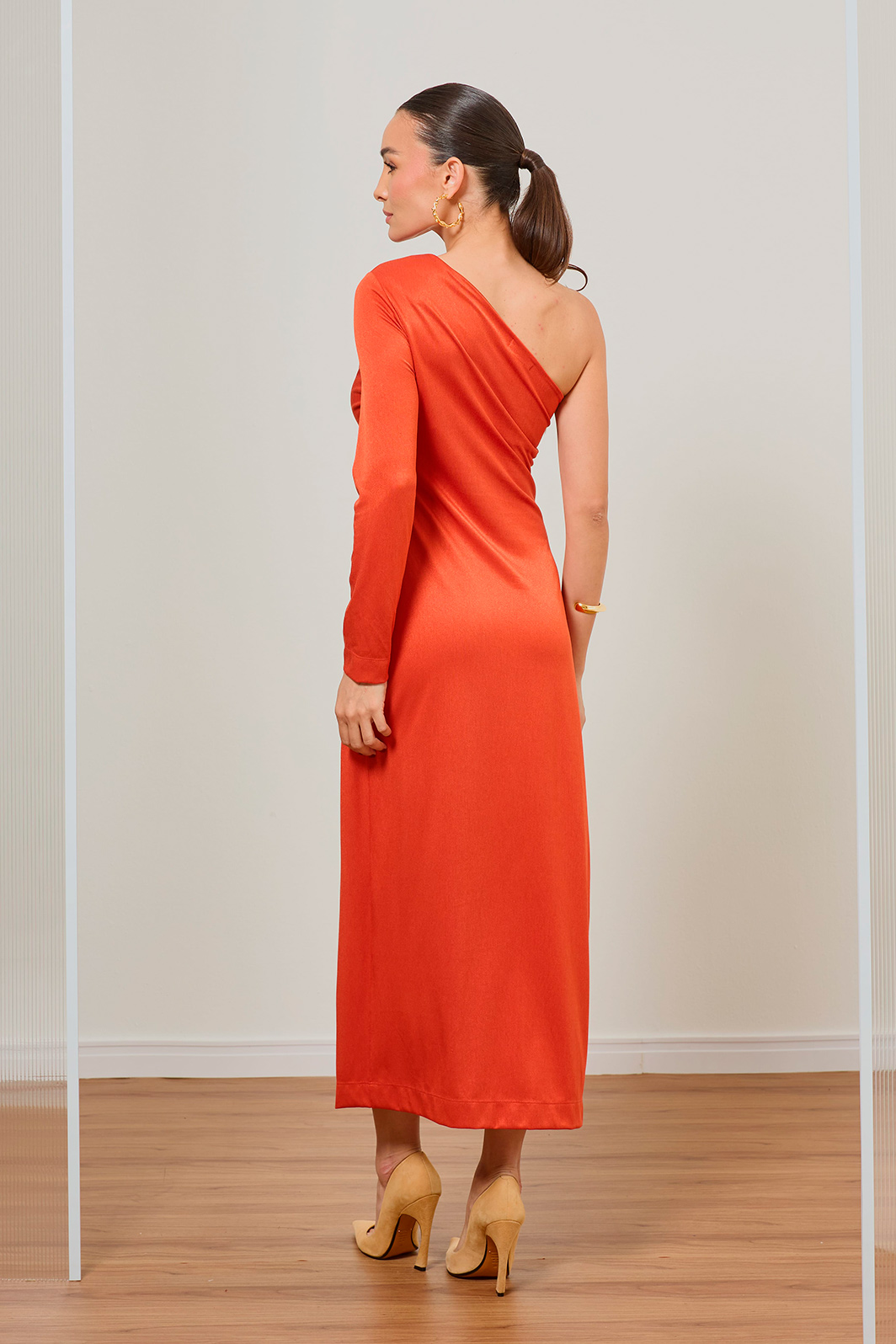 Vestido Midi Ombro Único Detalhe Cintura Jersey
